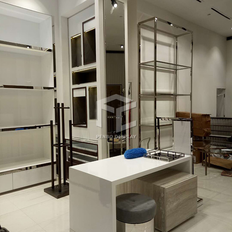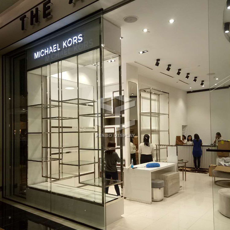 Εργαστήκαμε με ένα διάσημο εμπορικό σήμα σε όλο τον κόσμο: Τα κύρια υλικά του Michael Kors.The είναι stainelss χάλυβας και MDF. Το ανοξείδωτο είναι ειδικό γιατί κάποια προθήκη .MDF επίδειξης υψηλών σημείων μπορεί χρωματίζοντας οποιοδήποτε χρώμα και να κάνει οποιαδήποτε μορφή. Αυτός είναι ευκολότερος να φθάσει στο υψηλό σημείο κοιτάζει
